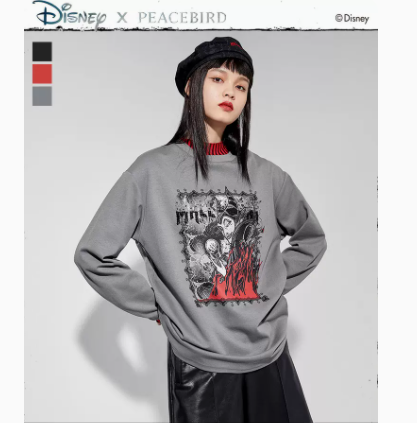 太平鸟沉睡魔咒联名圆领灰色卫衣女2021秋装新款个性宽松早秋上衣