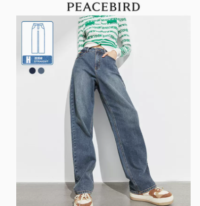 太平鸟复古直筒牛仔裤女2022早秋新款宽松阔腿高腰直筒牛仔长裤