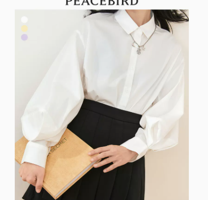太平鸟衬衫女白色灯笼袖设计感2022春新款内搭叠穿长袖上衣外套