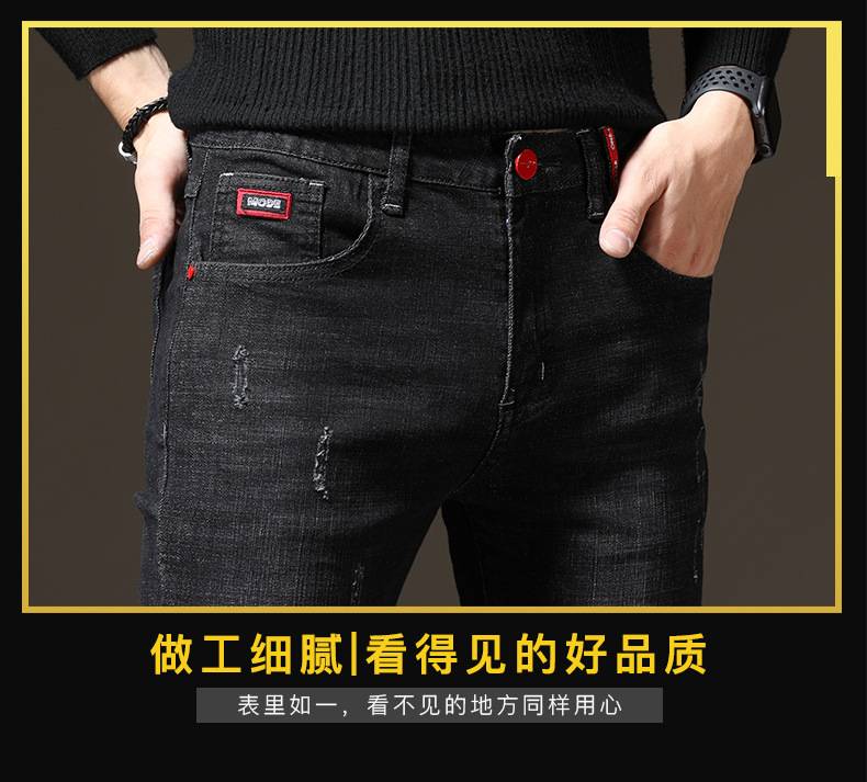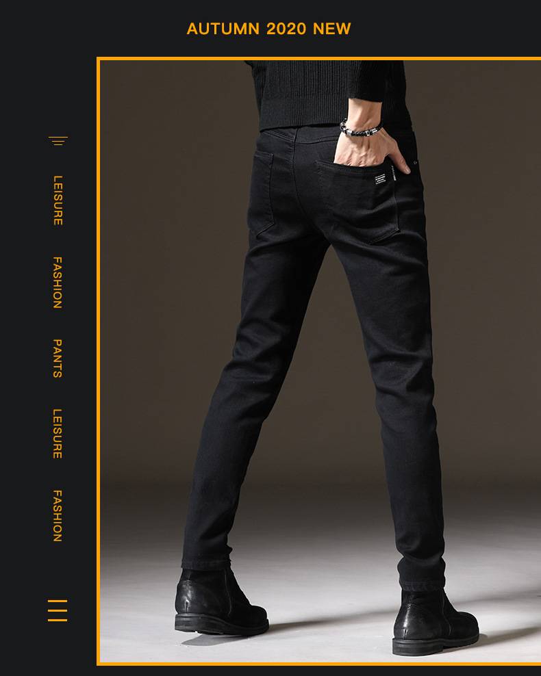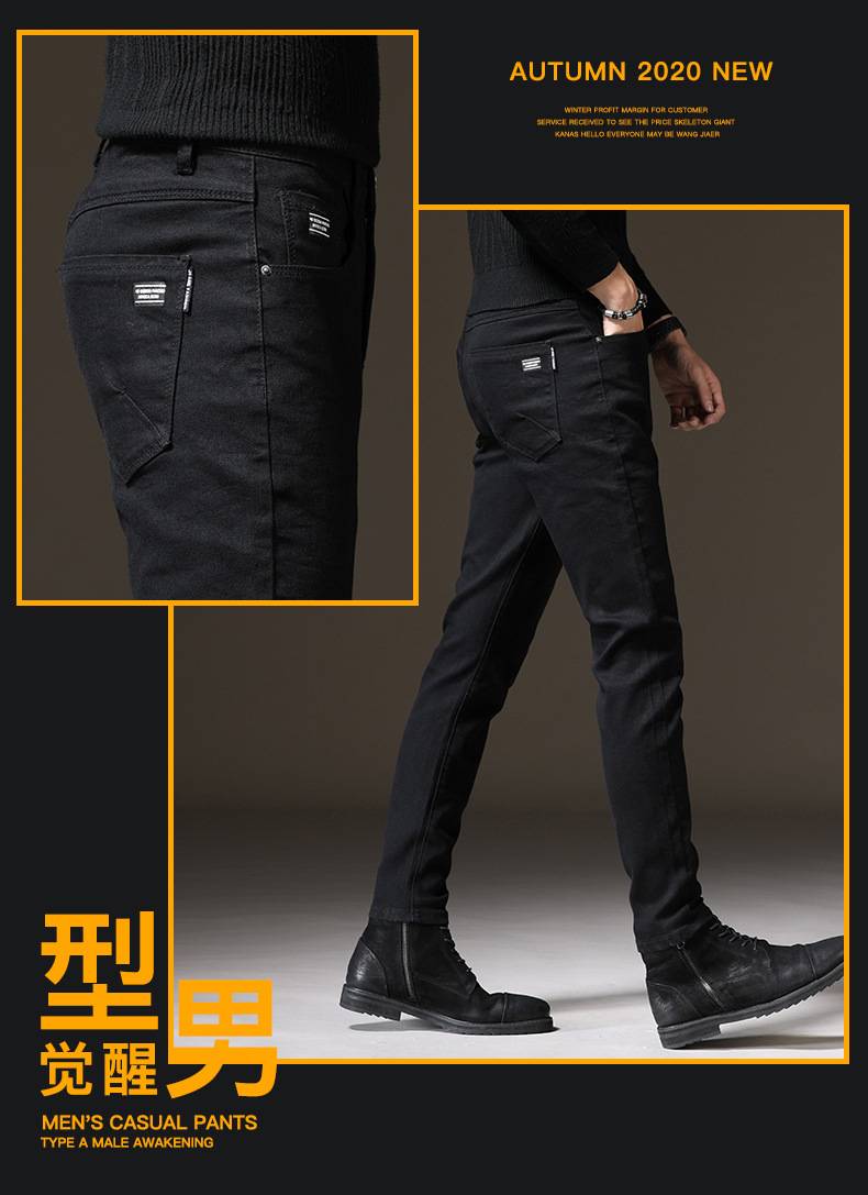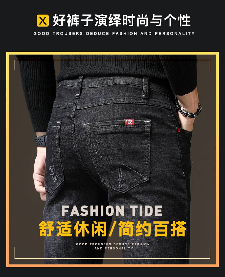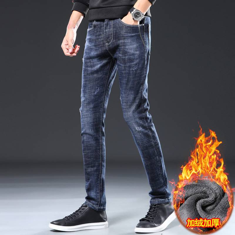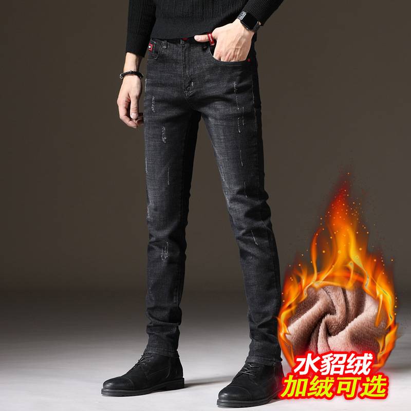 2021年新款黑色加绒牛仔裤男韩版修身显瘦小脚裤