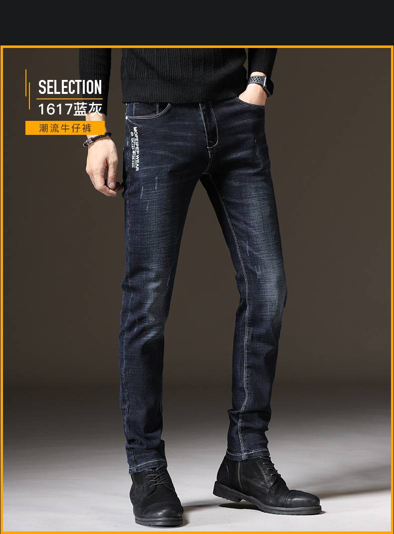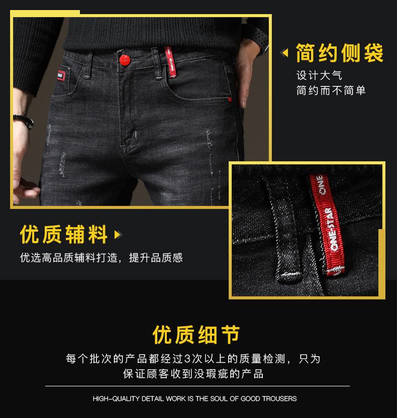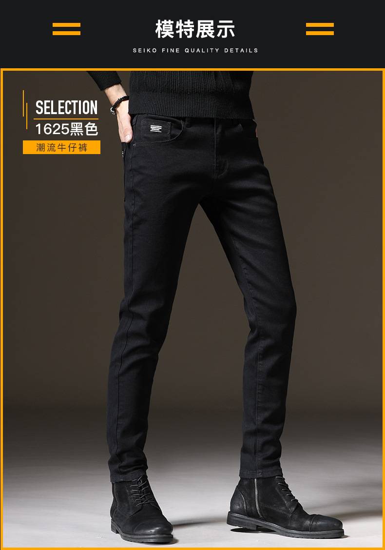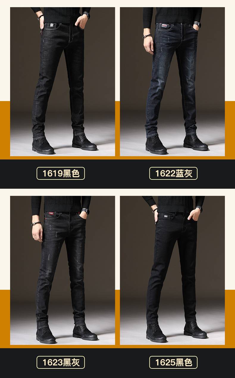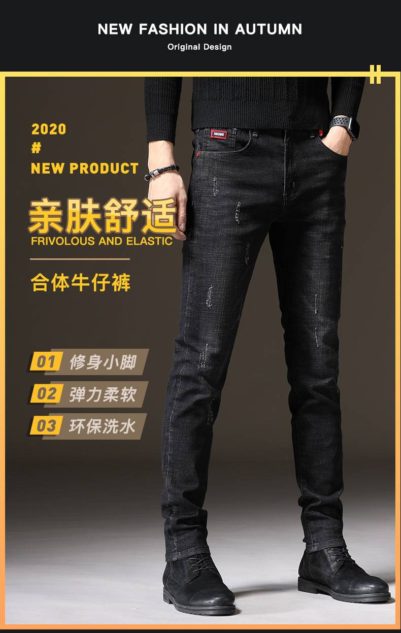 2021年新款黑色加绒牛仔裤男韩版修身显瘦小脚裤