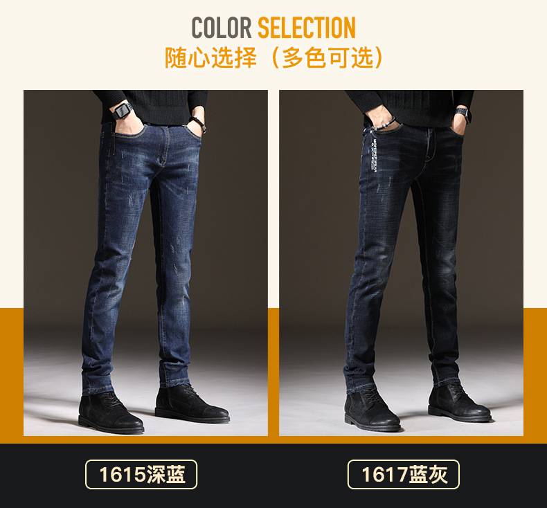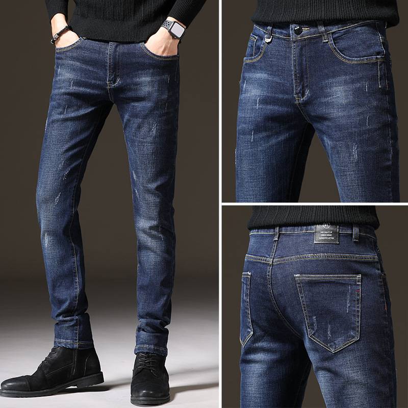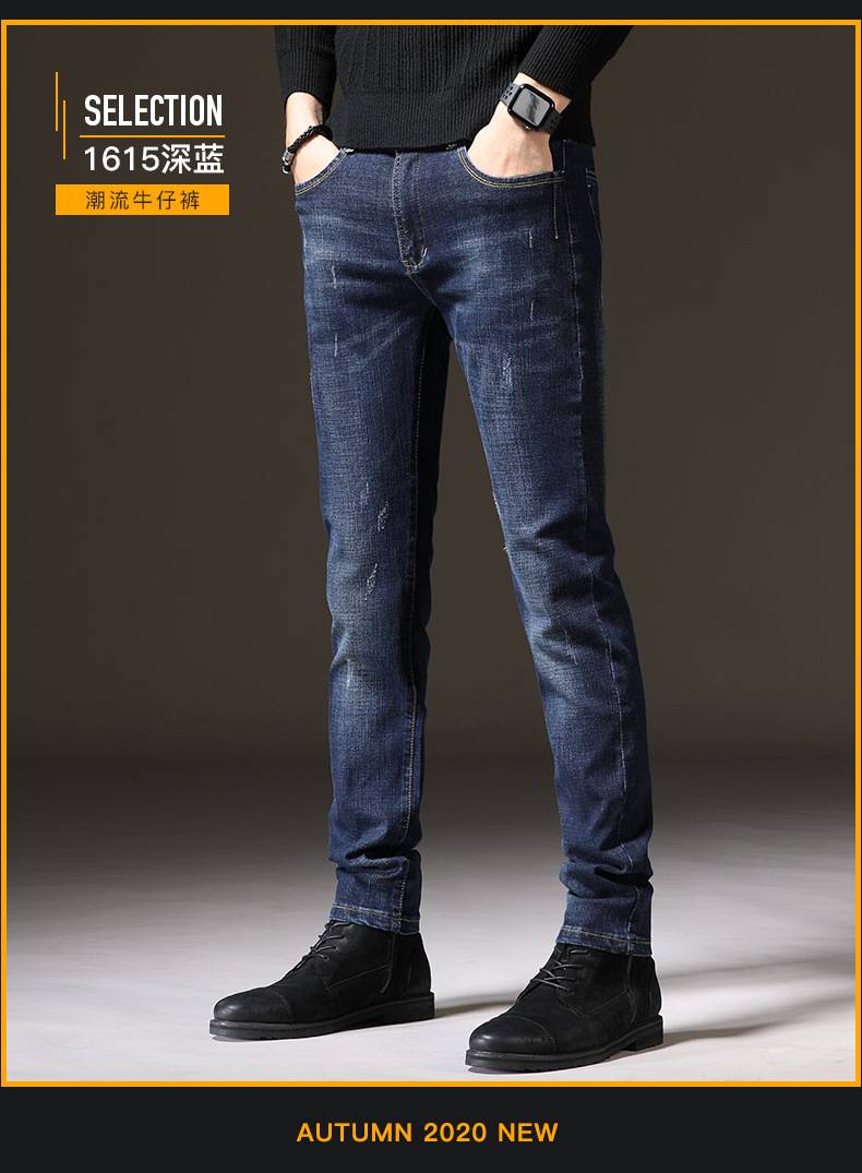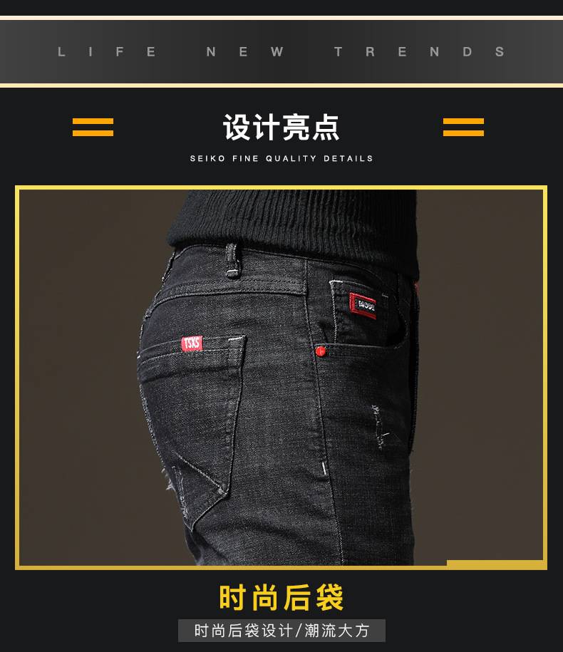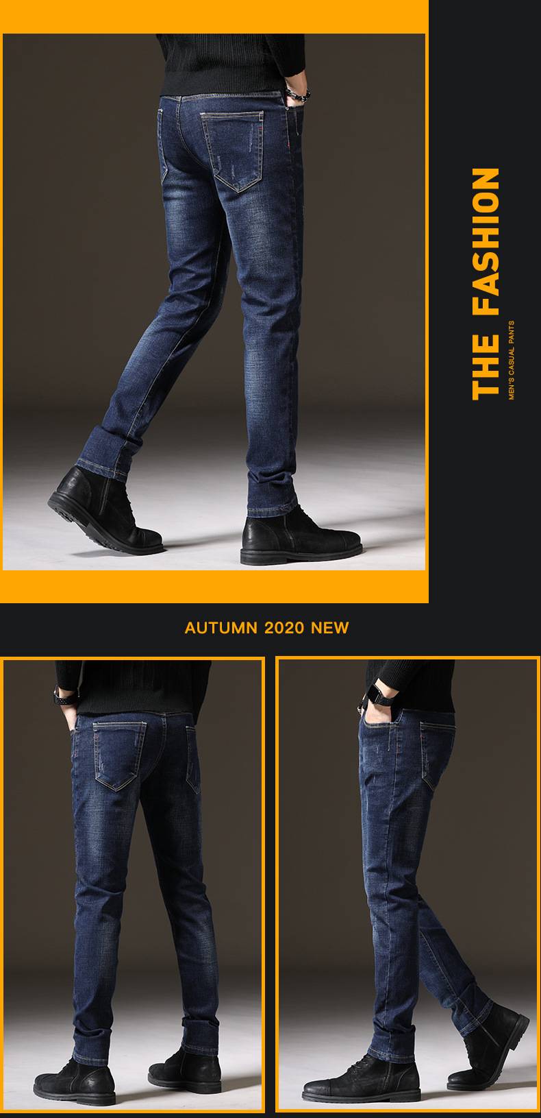 2021年新款黑色加绒牛仔裤男韩版修身显瘦小脚裤