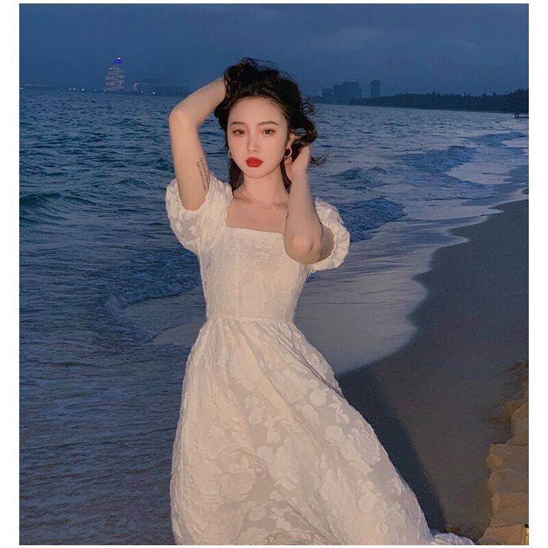 法式赫本温柔风白色雪纺连衣裙女2021夏仙女森系收腰显瘦气质裙子
