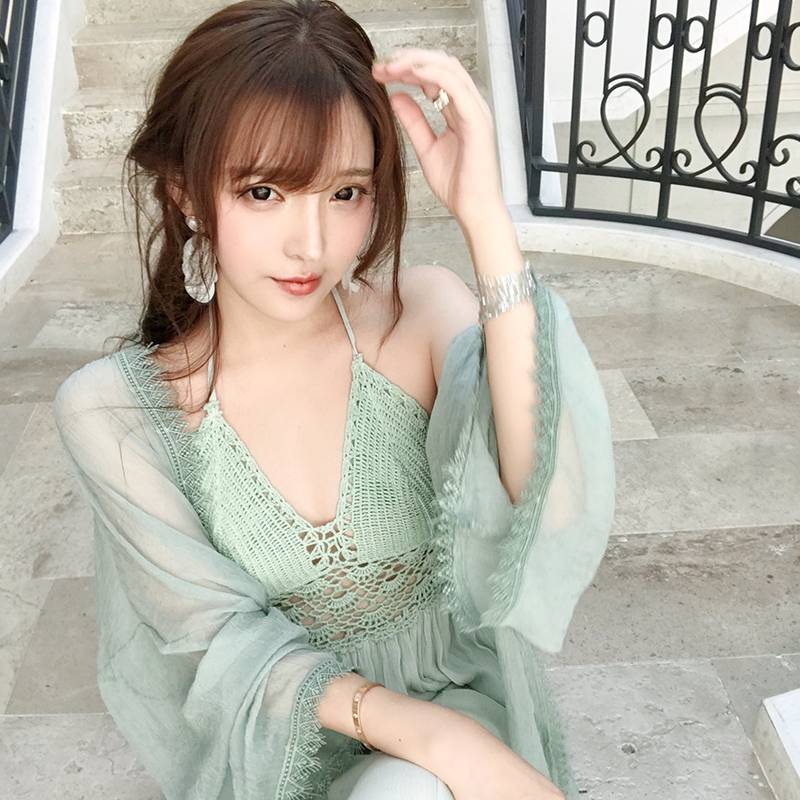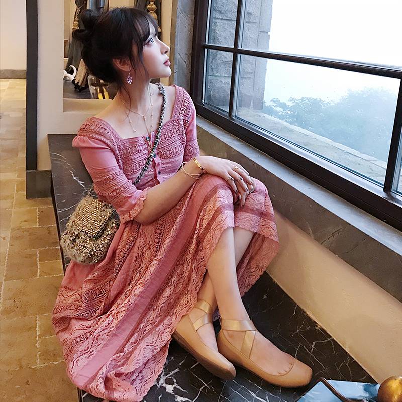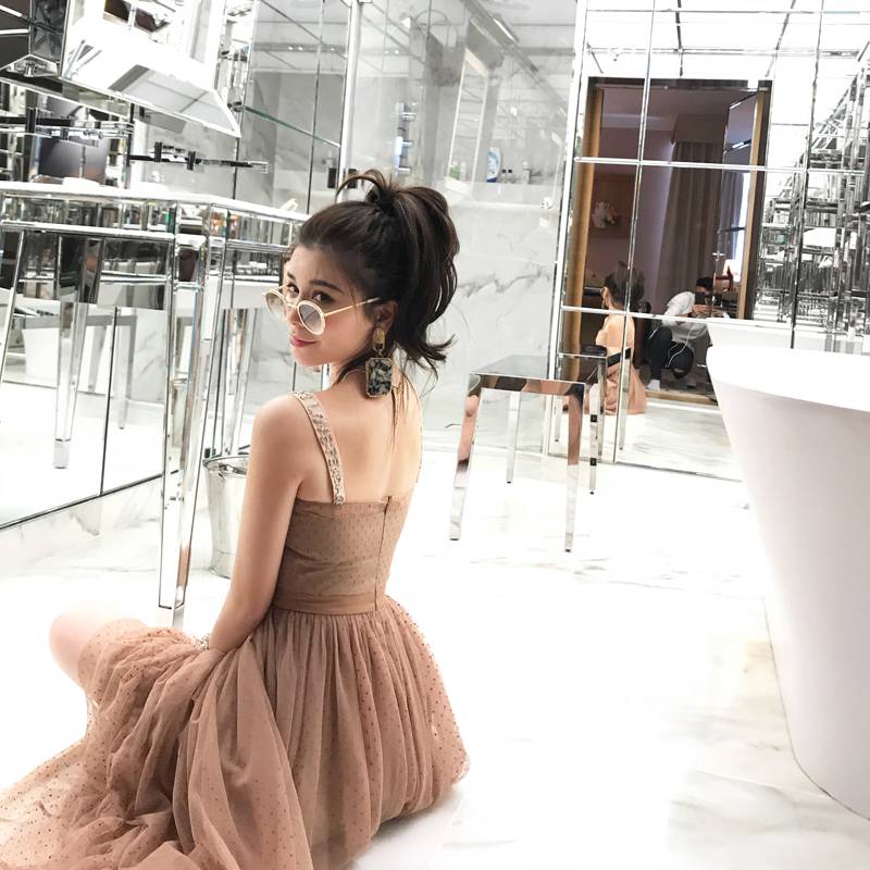 Forevercan2018夏季新款 网纱露肩吊带沙滩裙长裙气质连衣裙女