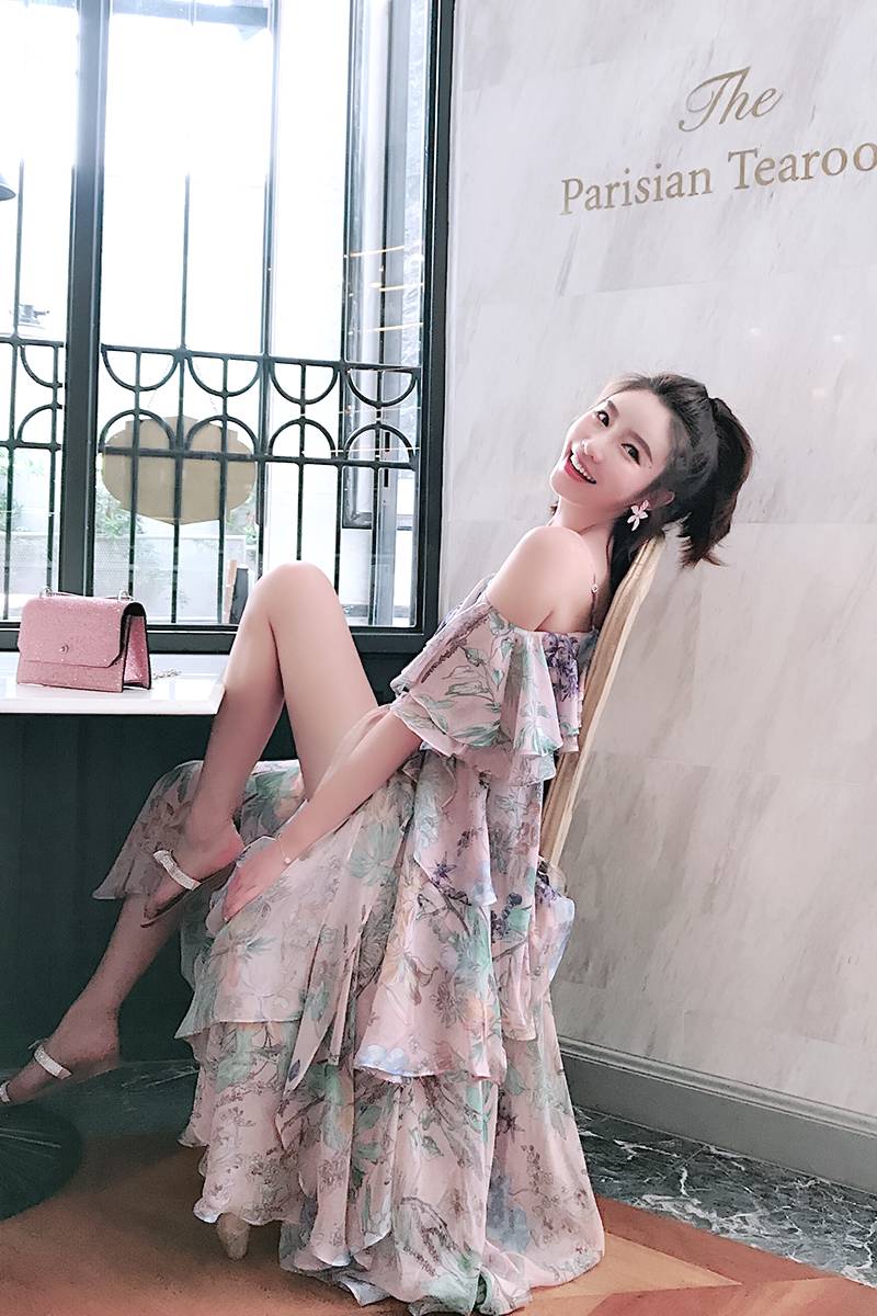 子晴超仙度假风小碎花连衣裙女18夏季新款不规则露肩吊带雪纺长裙