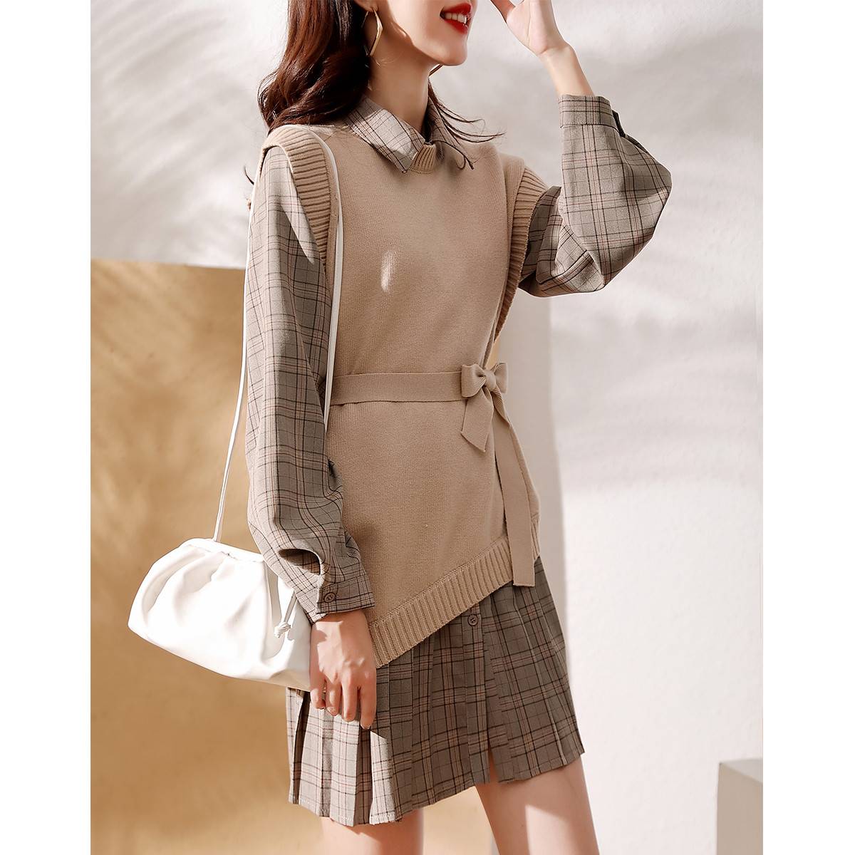 2022秋冬新款坎肩提花休闲背心欧美修身羊毛衣女套头针织马甲女