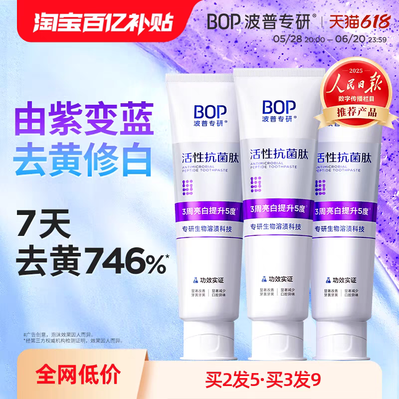 【人民日报推荐】BOP色修美白牙膏清新口气亮白牙齿黄抗菌肽正品 39.90 已售:1件