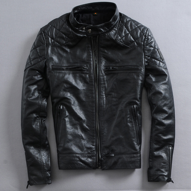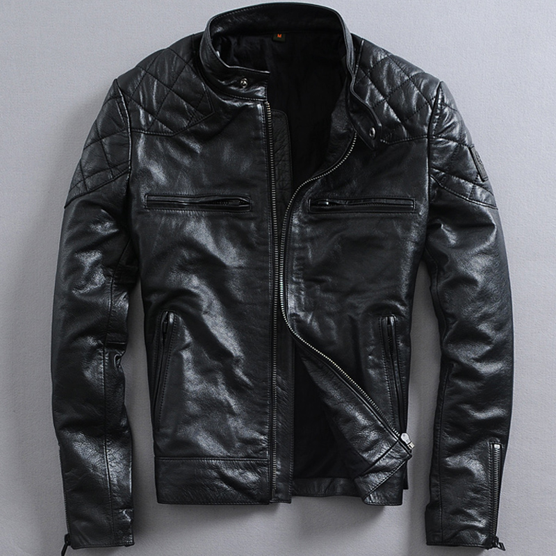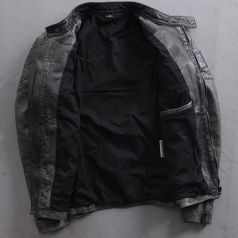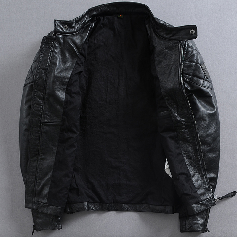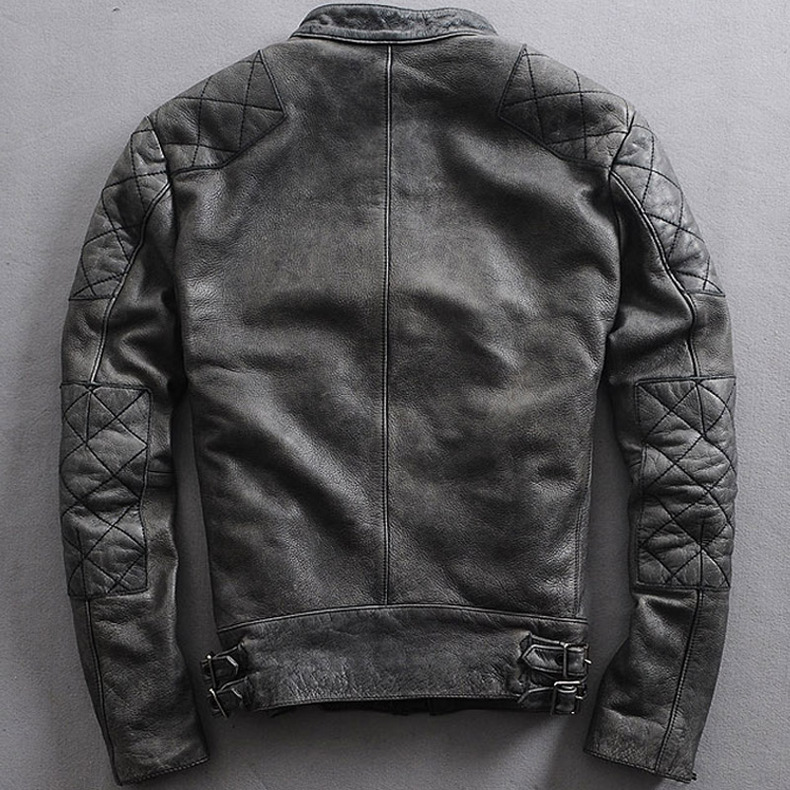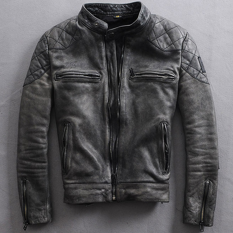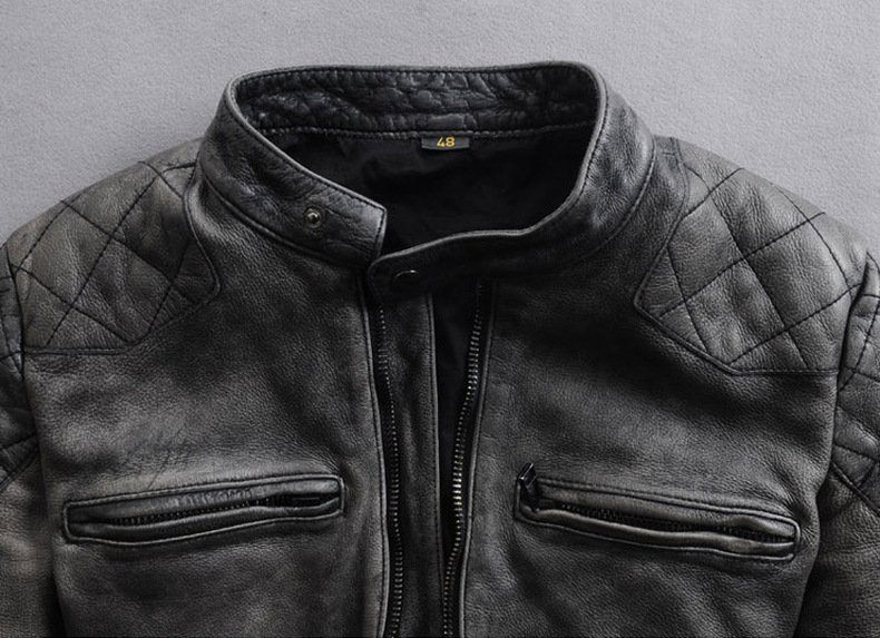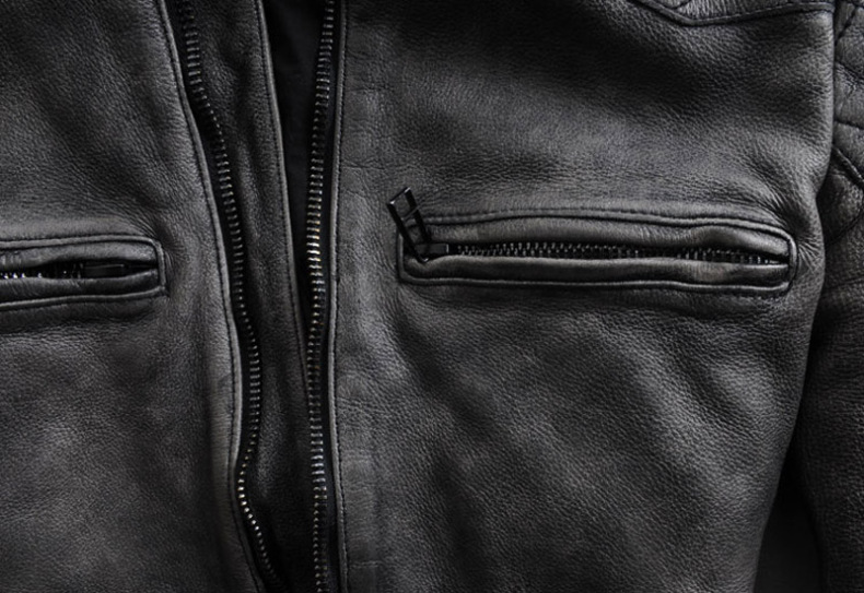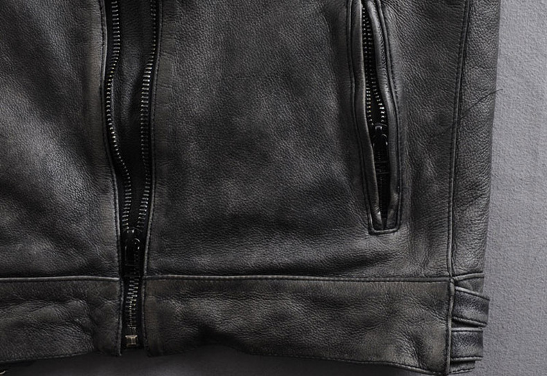 北美纯进口头层野牛皮复古做旧真皮皮衣 男士潮流短款皮夹克外套