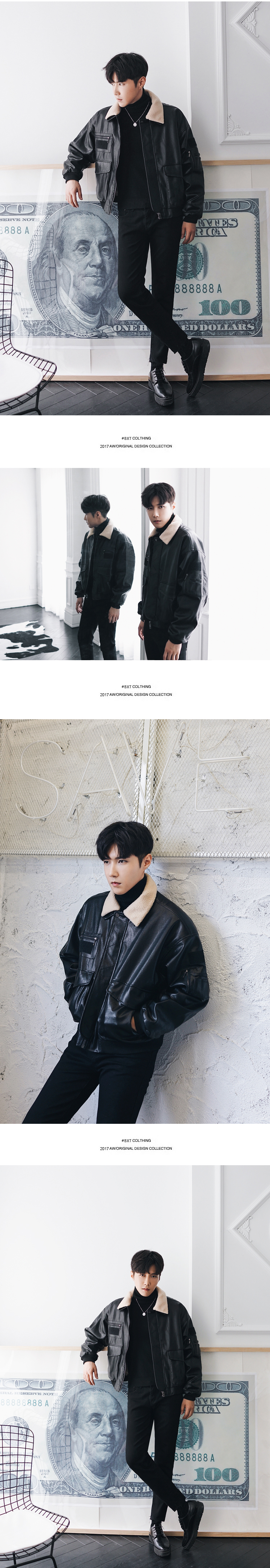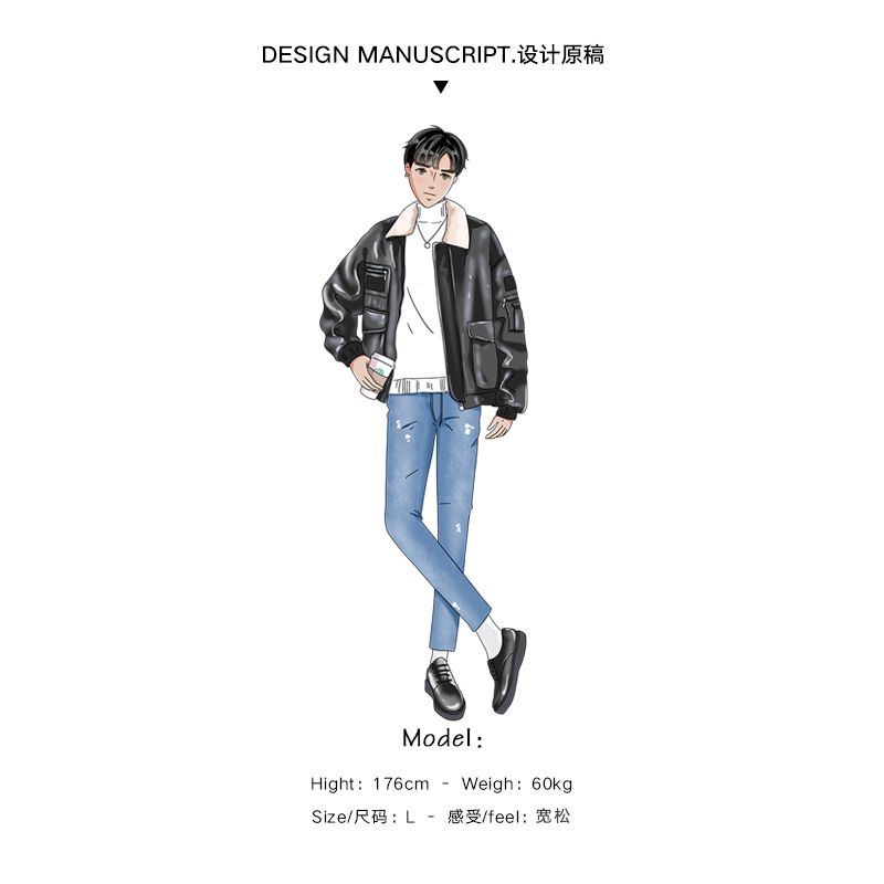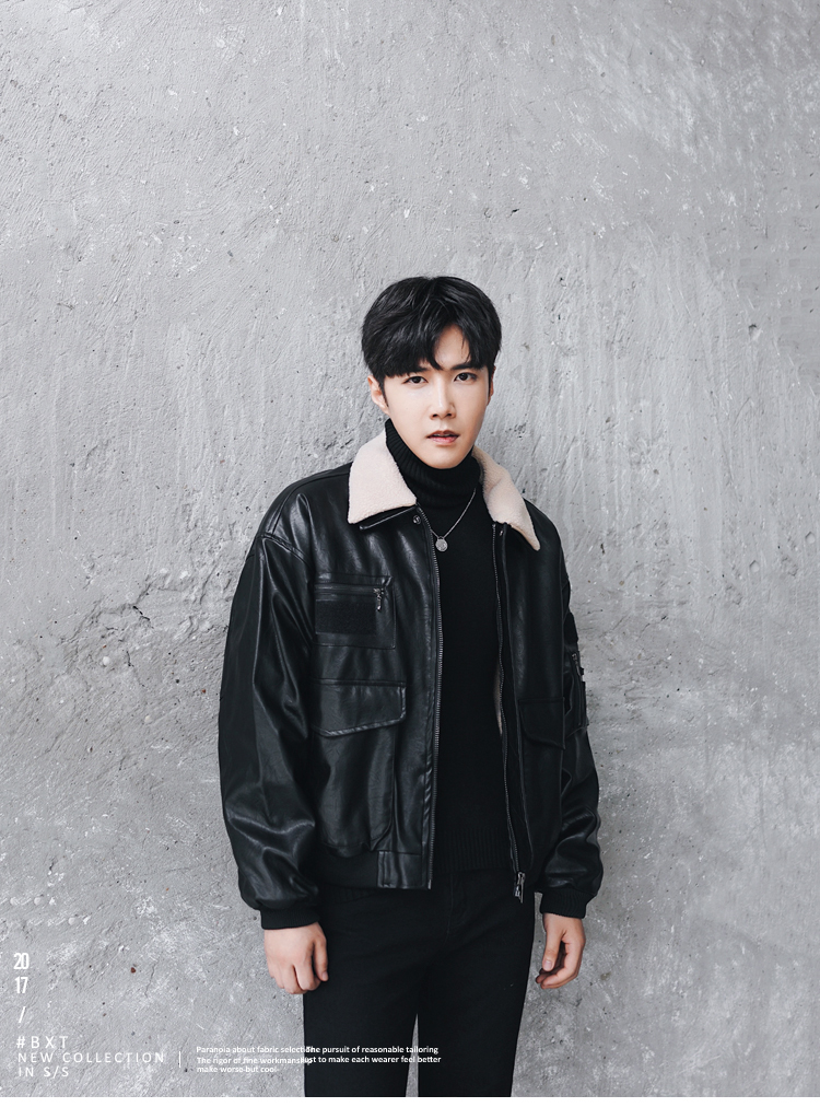 MRCYC皮夹克男潮韩版加厚保暖机车羊羔毛皮衣毛领皮夹克外套冬装