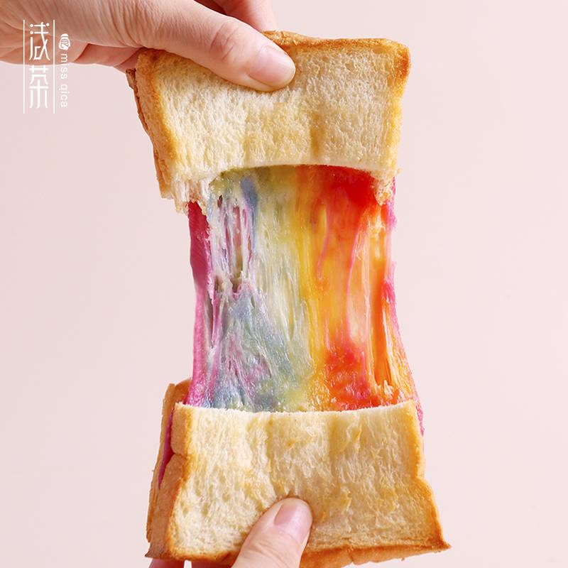 浅茶家彩虹吐司网红拉丝休闲芝士夹心早餐手撕面包代餐小零食食品
