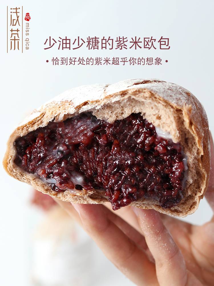 浅茶全麦软欧包麻薯紫米面包网红早餐少油少糖手工小零食吐司糕点