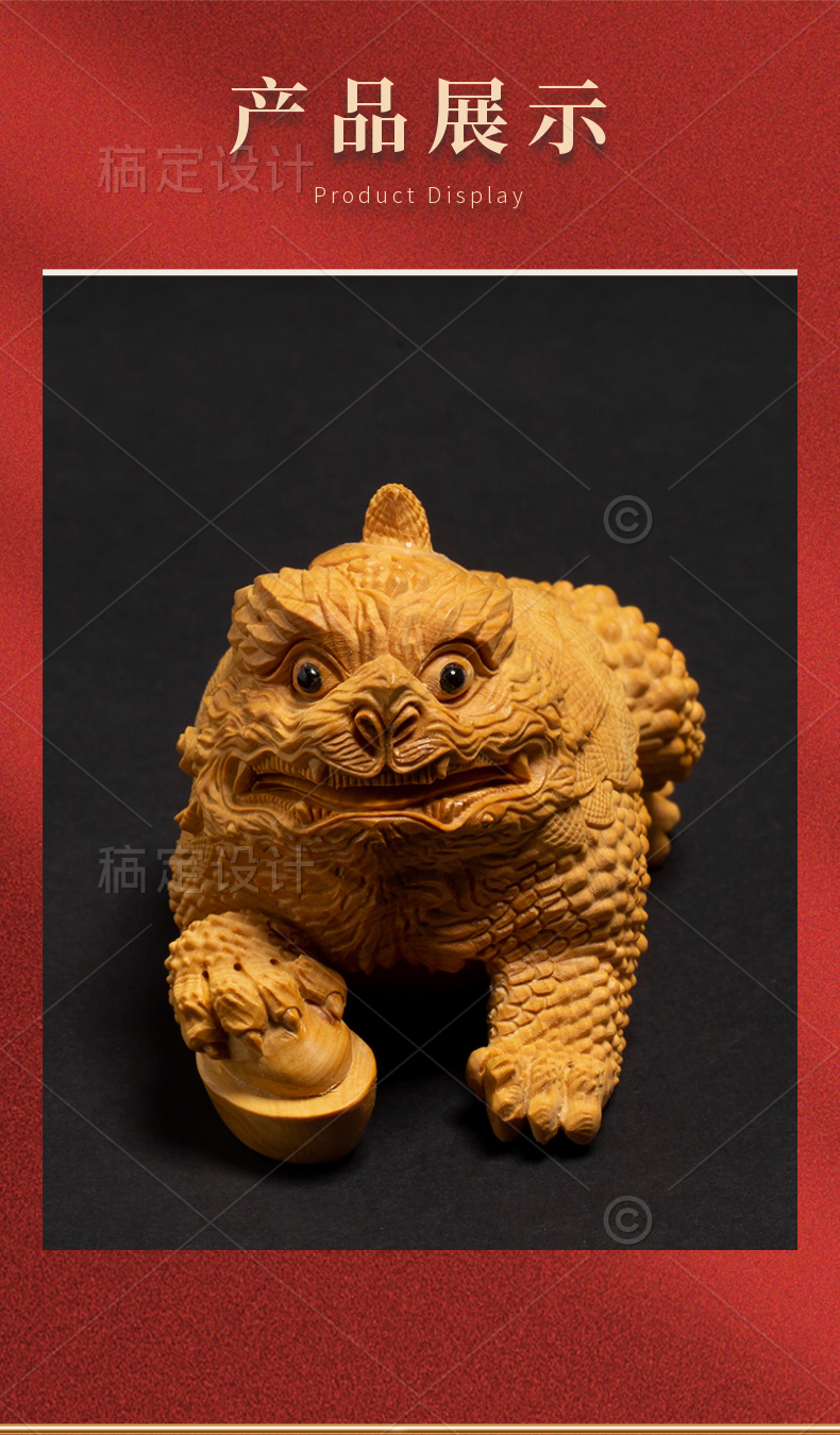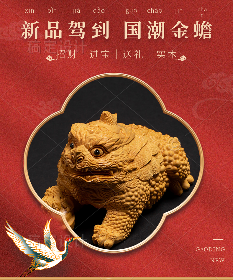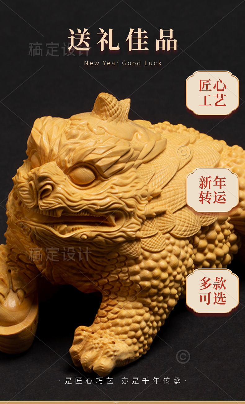 客厅装饰雕刻工艺品蟾蜍小摆件店铺开业礼品黄杨木雕三足金蟾中式