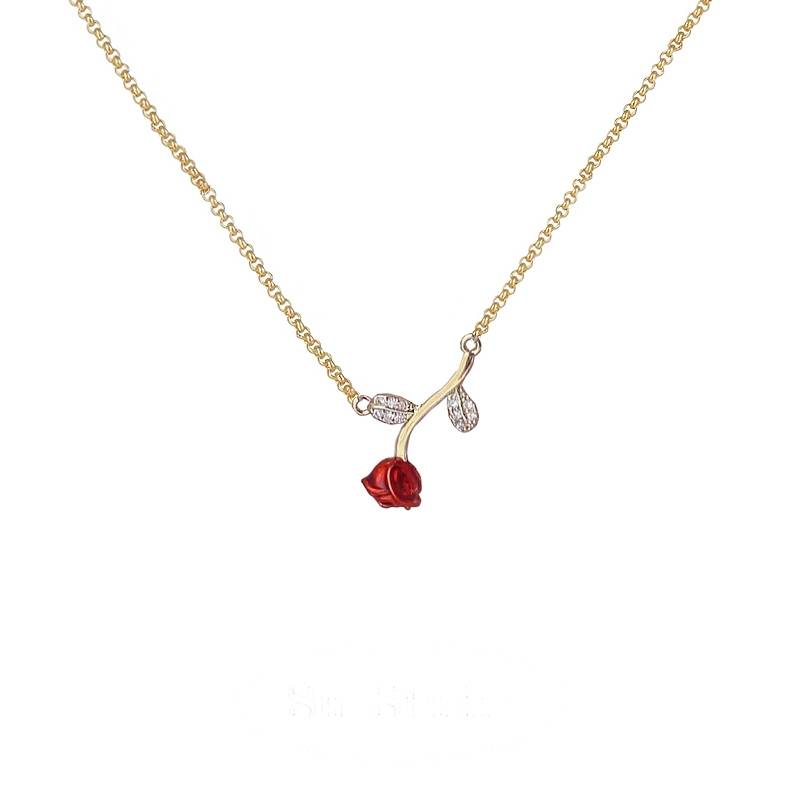 SU苏家 小王子的玫瑰 法式复古玫瑰花酒红气质精致锆石项链锁骨链