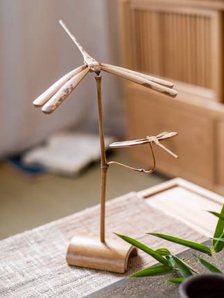 平衡竹蜻蜓茶道摆件手工怀旧工艺品茶室雅玩桌面装饰品礼物