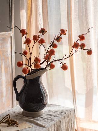 仿真柿子果实树枝花艺浆果柿柿如意插花客厅干花装饰品摆设