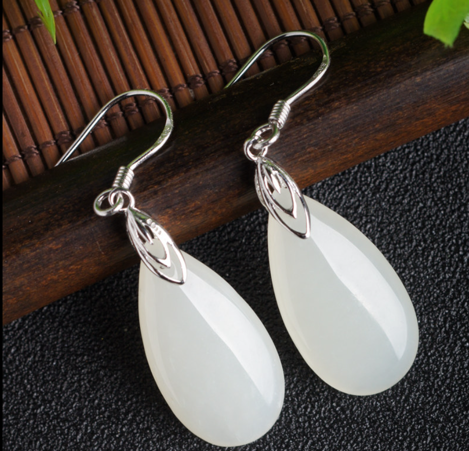 带证书925和田玉耳环汉服防过敏纯银耳饰国潮古风饰品水滴玉耳坠