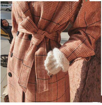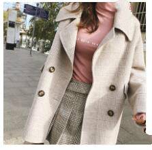 谜秀毛呢外套女中长款2018秋冬装新款韩版格子流行赫本呢子大衣潮