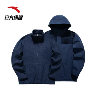 安踏运动外套男2022秋冬梭织连帽开衫卫衣羊羔毛绒立领上衣两件套