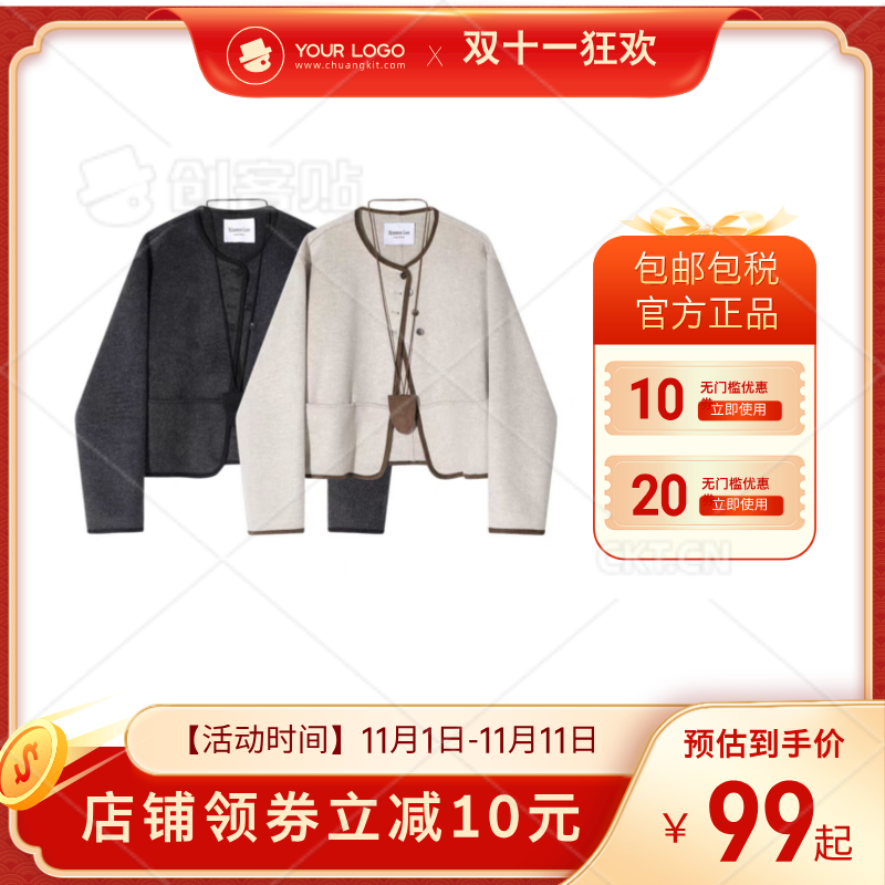 ZOJ手缝羊毛双面绒外套格子大衣女西装新款秋冬毛呢女装