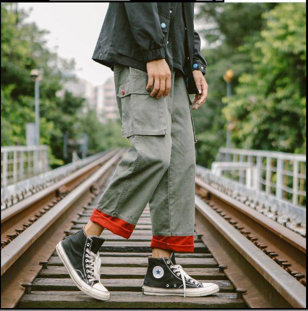 Edcccc2018日系潮牌工装裤男余文乐宽松拼接撞色直筒裤