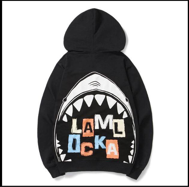 香港it潮牌日系秋冬男女鲨鱼牙齿印花韩版卫衣字母刺绣卡通外套衫
