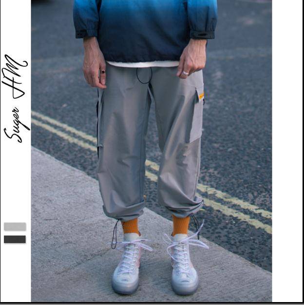 2018潮牌嘻哈多口袋工装裤抽绳飘带休闲束脚裤男女宽松机能运动裤