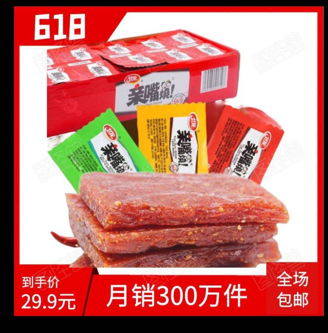 卫龙亲嘴烧辣条麻辣零食红烧牛肉辣味面筋素食学校便利休闲食品 童年回忆