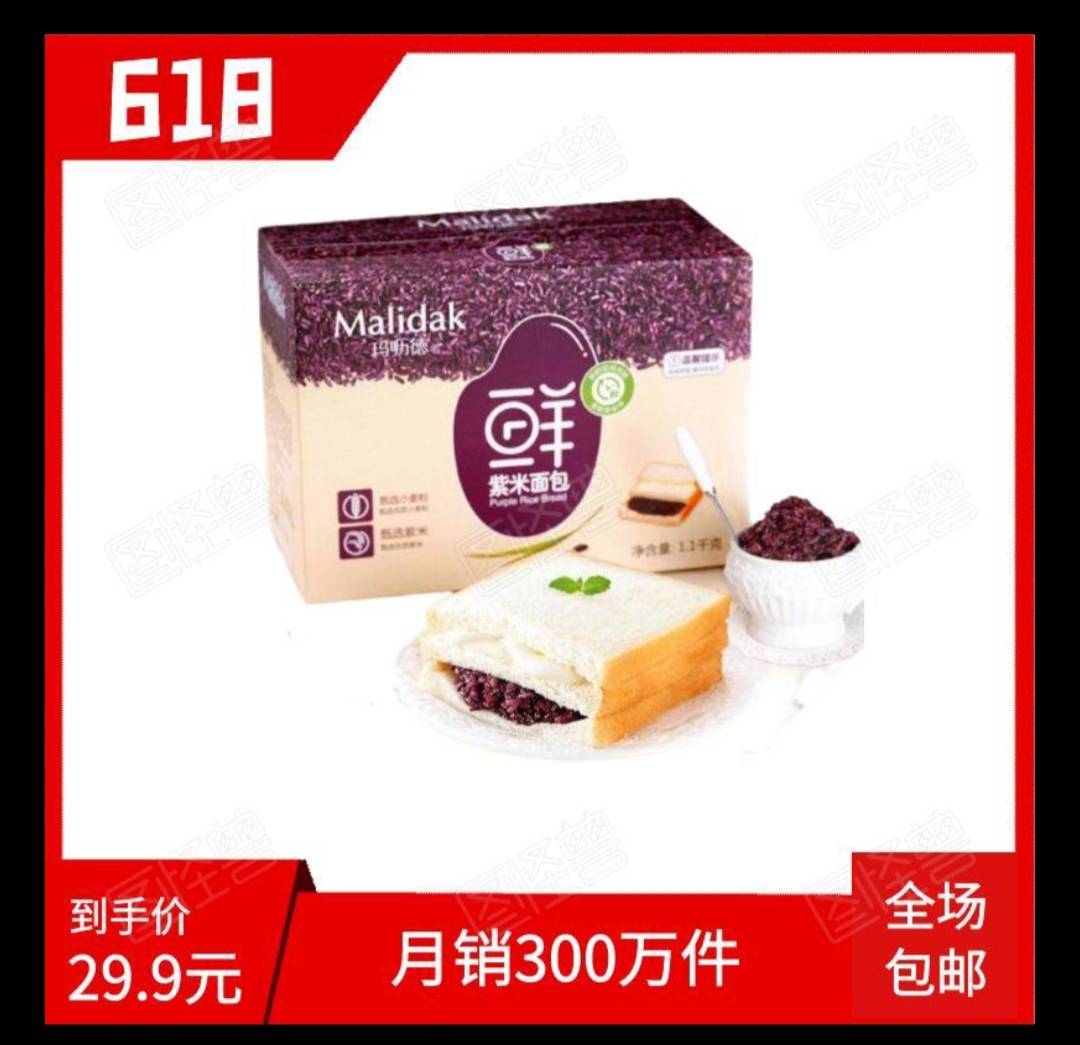 玛呖德紫米面包夹心吐司奶酪切片蒸蛋糕新鲜食品营养早餐零食糕点