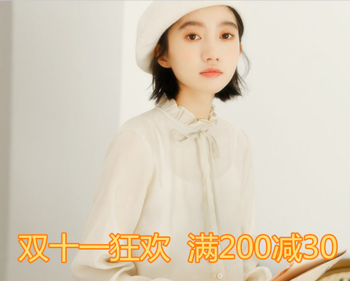 2018喇叭袖衬衫女秋冬新款韩版立领长袖上衣女小清新直筒衬衣 65.00 已售:0件
