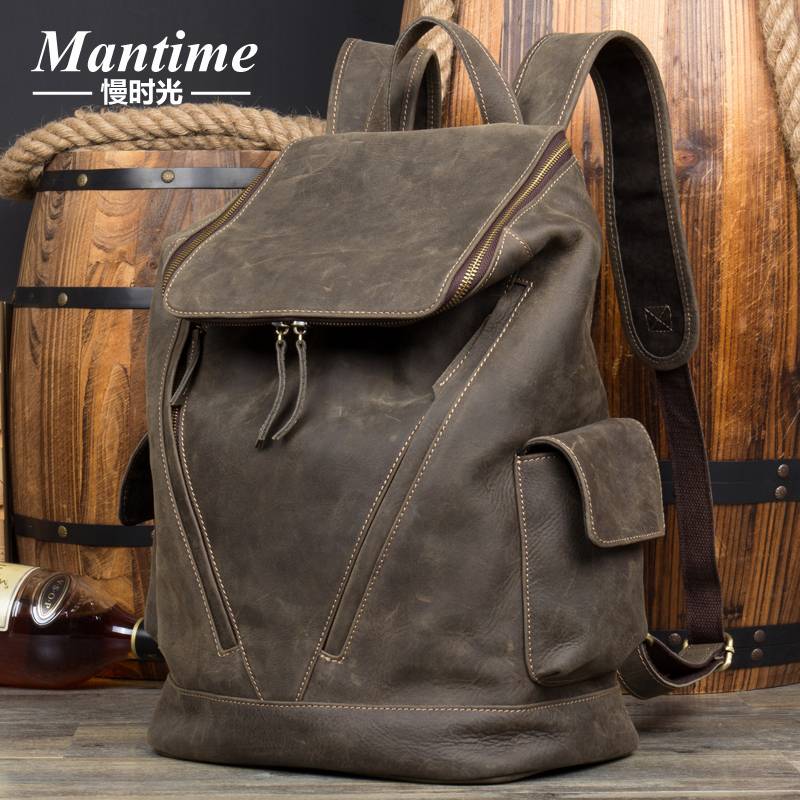 慢时光疯马皮双肩包男真皮复古手工头层牛皮