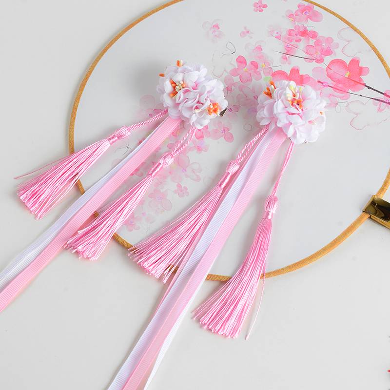 儿童古风头饰古装发饰绢花女童汉服流苏飘带中国风发夹配饰边夹