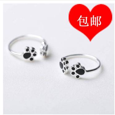 925银戒指女韩版时尚个性黑色滴胶猫爪戒指指环开口可调节戒子