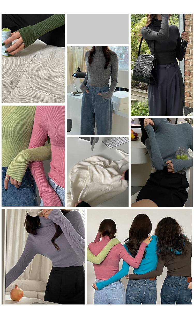 莫兰迪色系高领针织打底衫女2021秋冬新款细羊毛薄款修身弹力上衣