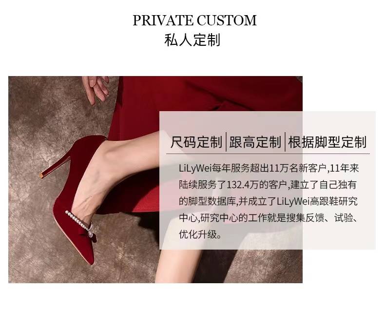 lilywei大码法式婚鞋细跟尖头小码新娘鞋蝴蝶结鞋子