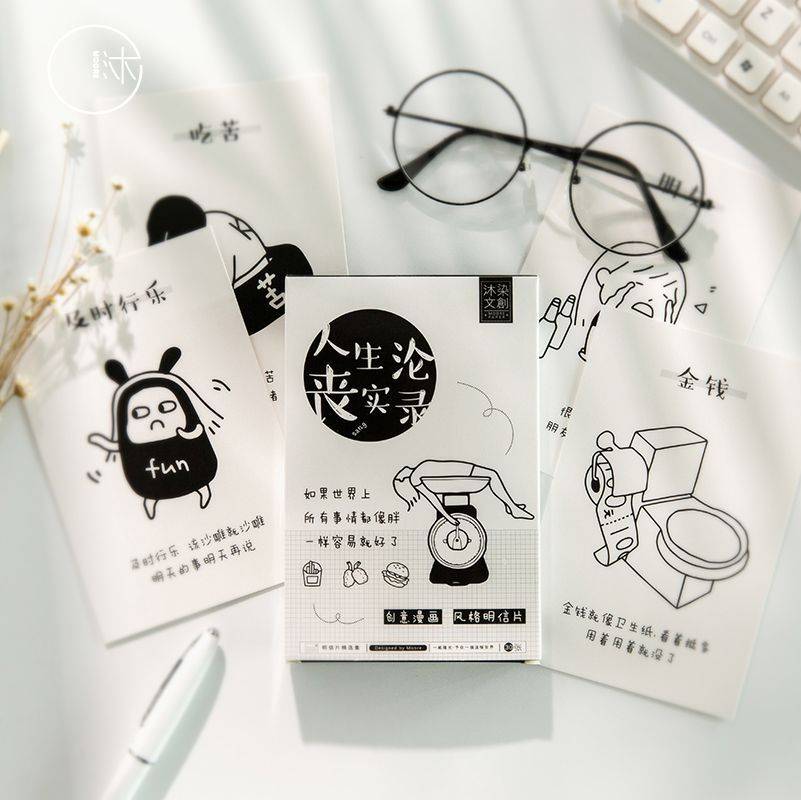 沐染 盒装明信片 人生沦丧实录 创意明信片 30张套装卡片