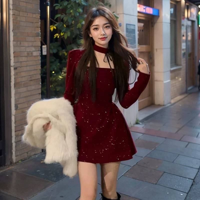 新年战袍连衣裙2024秋冬新款高级礼服收腰短裙显瘦气质年会裙子潮