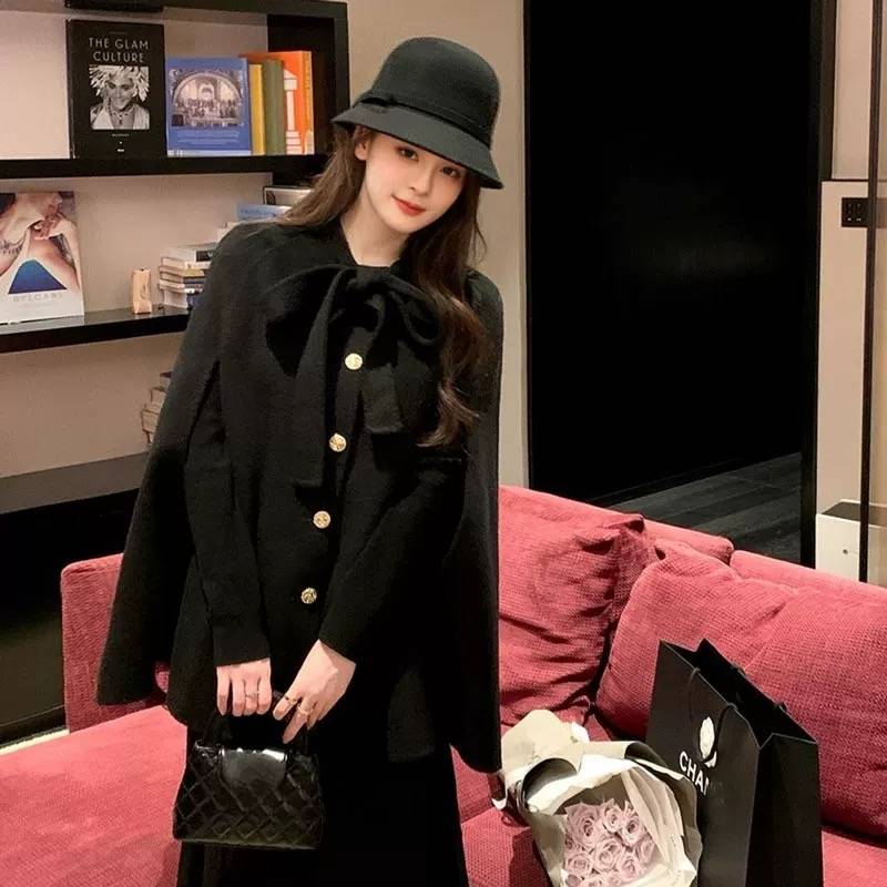 留洋富家千金感斗篷披肩大衣女秋冬赫本高级感超好看气质毛呢外套