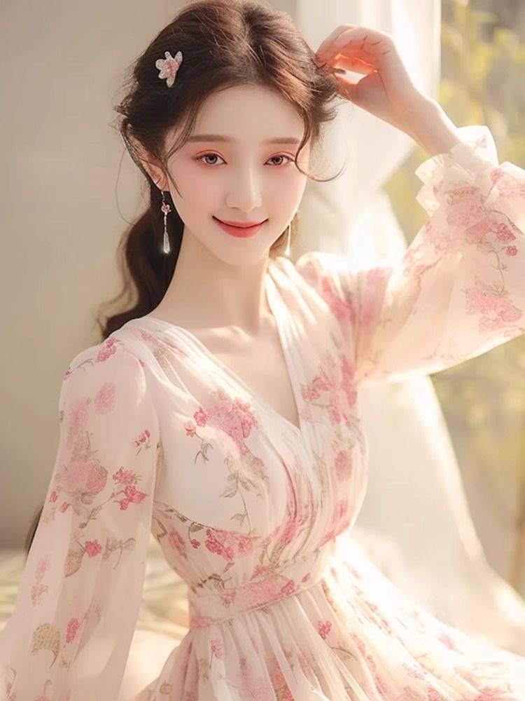 吊带复古小红连衣裙2020夏季新款女装超仙小众桔梗雪纺裙子