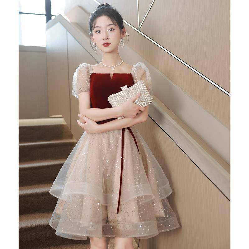 2021夏季新款品牌女装性感一字领chic淑女刺绣雪纺连衣裙