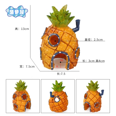 菠萝屋鱼缸造景全套餐卡通公仔摆件躲避屋海绵宝宝小房子装饰布景