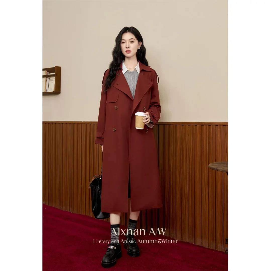 红色长款毛呢大衣