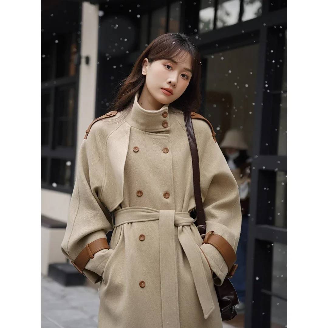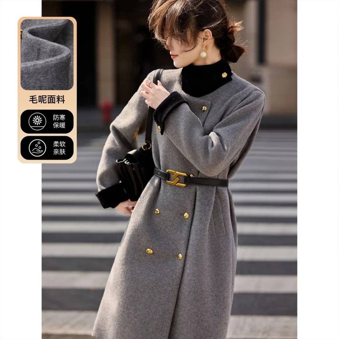 冬季时尚百搭绵羊毛高级感宽松气质毛呢外套长款过膝大衣
