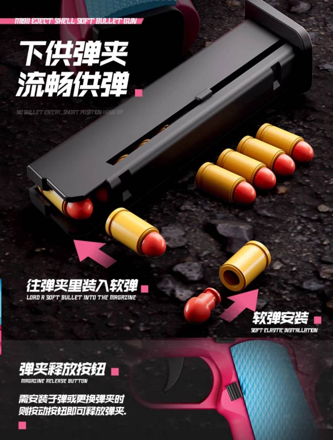 连发柯尔特手抢软弹枪自动抛壳1911格洛克仿真儿童男孩玩具枪沙鹰