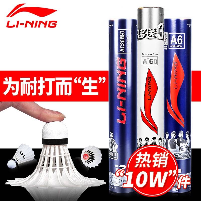 正品李宁羽毛球耐打训练12只装鹅毛AC26