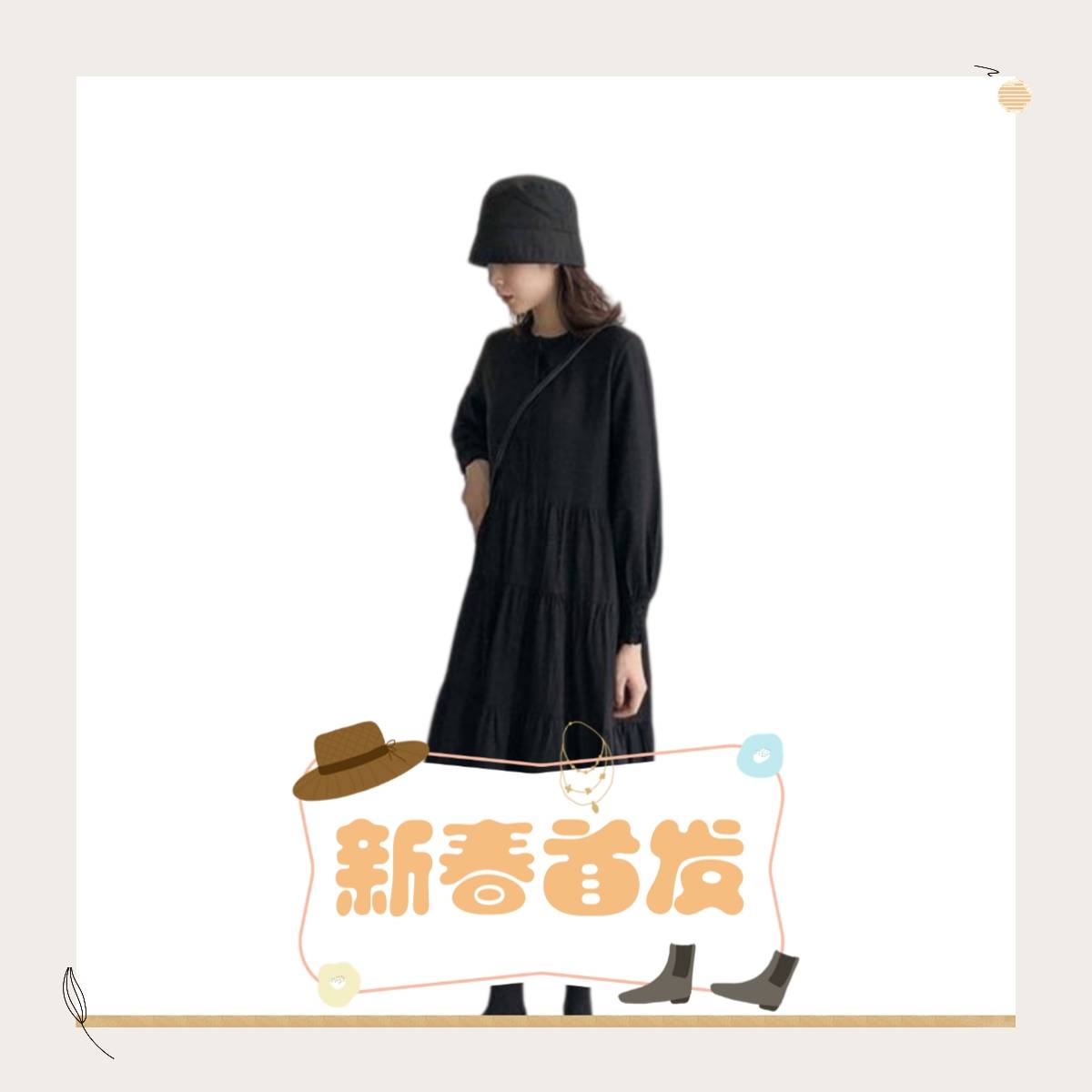 2022年法式复古长袖连衣裙新款早秋韩国黑裙宽松女装