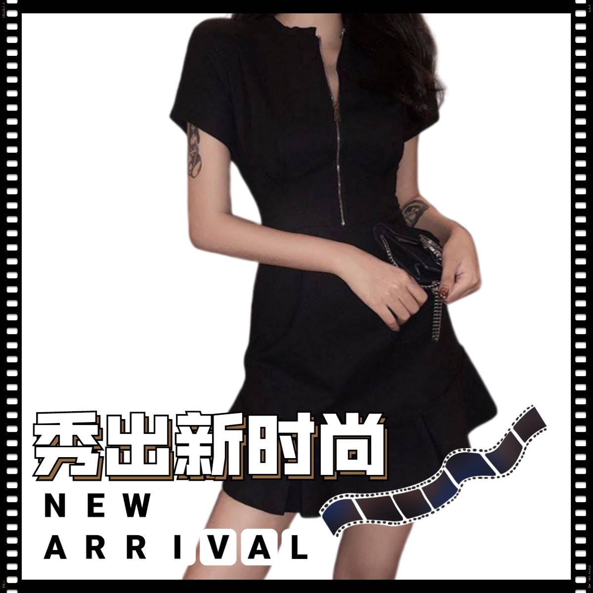 心机裙子设计感超仙女冷淡风赫本小黑裙极简主义鱼尾连衣裙2022夏