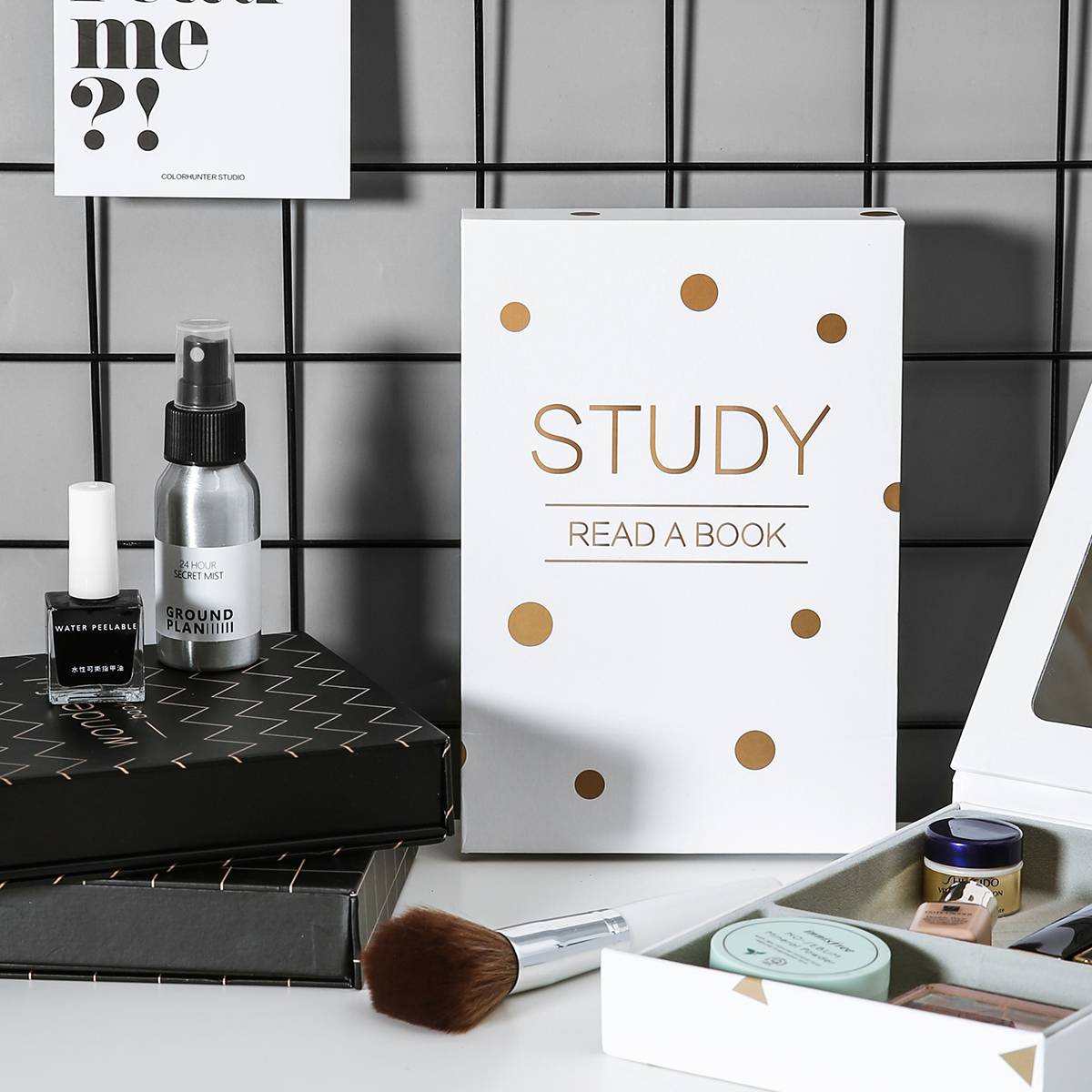杂啊 创意留声储物化妆镜 台式大号折叠镜子便携宿舍收纳盒梳妆镜