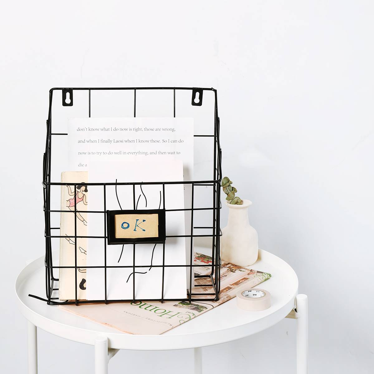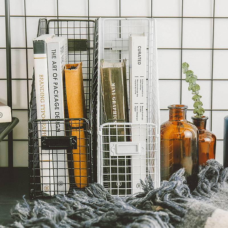 杂啊 北欧风铁艺桌面收纳篮居家篮子收纳筐办公杂货储物书籍书架