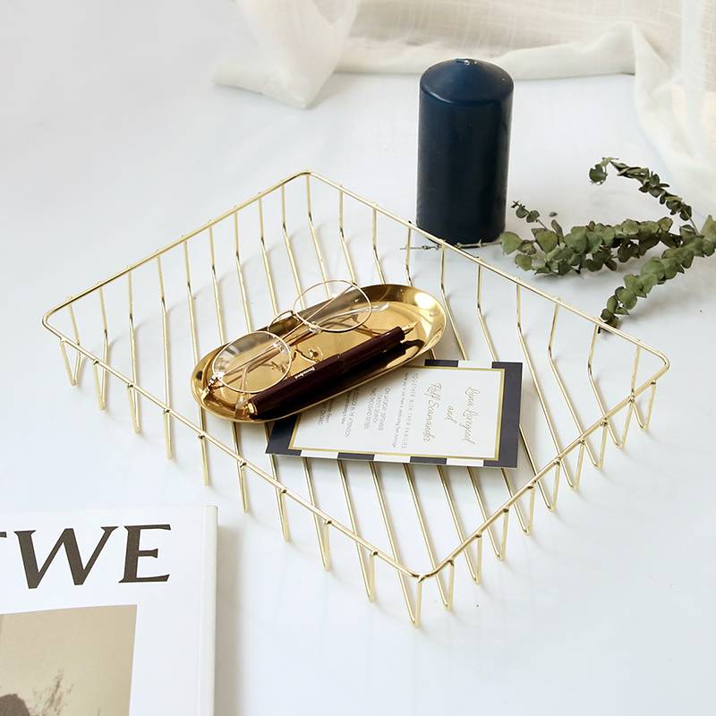 ZAA杂啊 北欧风铁艺桌面条纹收纳篮金色玫瑰金家居杂物置物篮