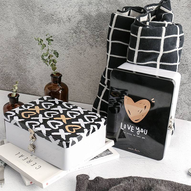 ZAA杂啊 金色恋歌带锁收纳盒创意大号桌面马口铁整理化妆品储物盒